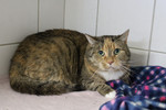 Emmi wurde abgegeben, weil sich sich aggressiv gegenüber der Halterin verhalten hat. Sie hatte sich massiv gewehrt, als man sie in einen Transportkorb setzen wollte.