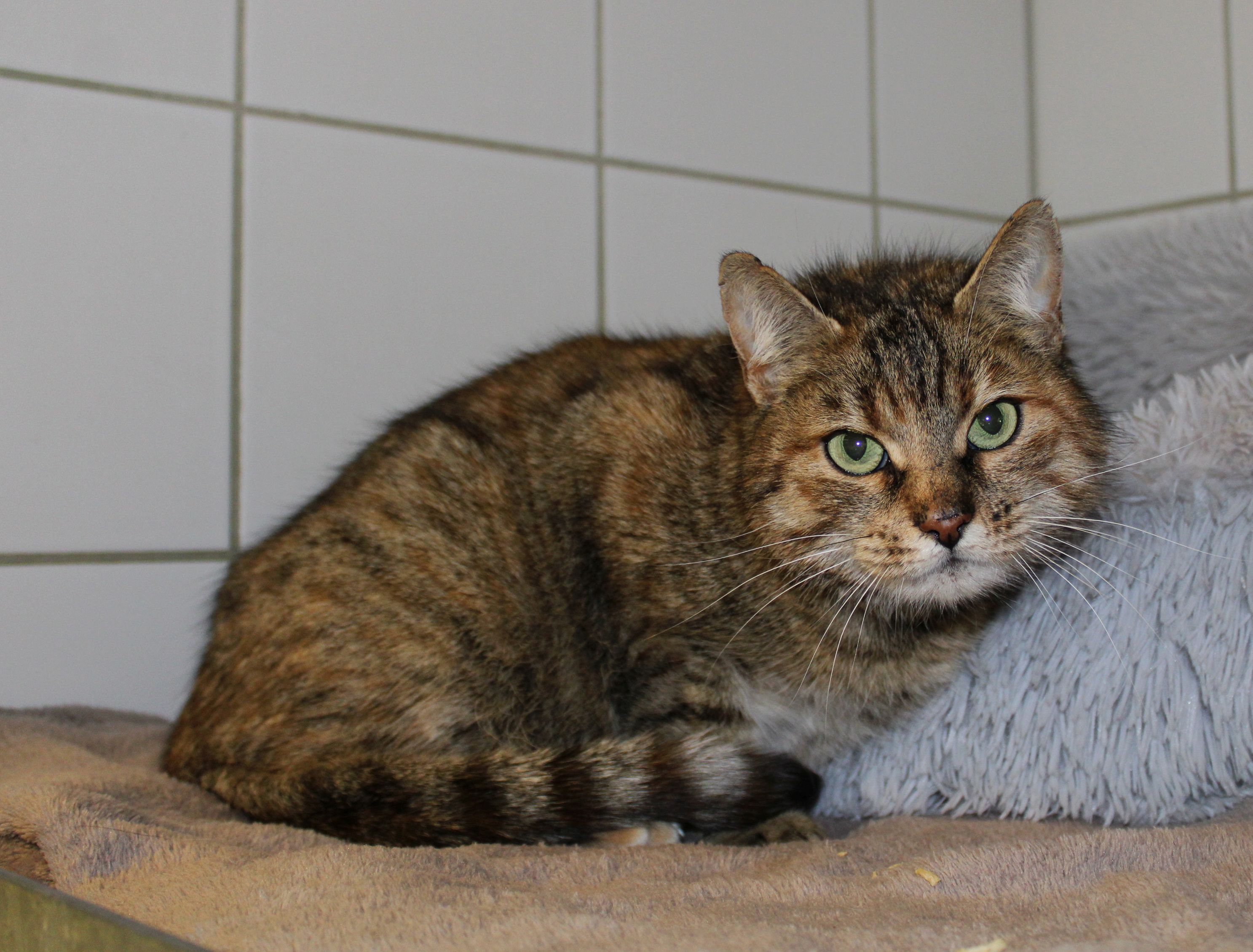 Julia tauchte an einem Haus in einem Waldgebiet auf. Sie hat sich dort über einen längeren Zeitraum anfüttern lassen und konnte schlussendlich in den Keller des Hauses gelockt werden.