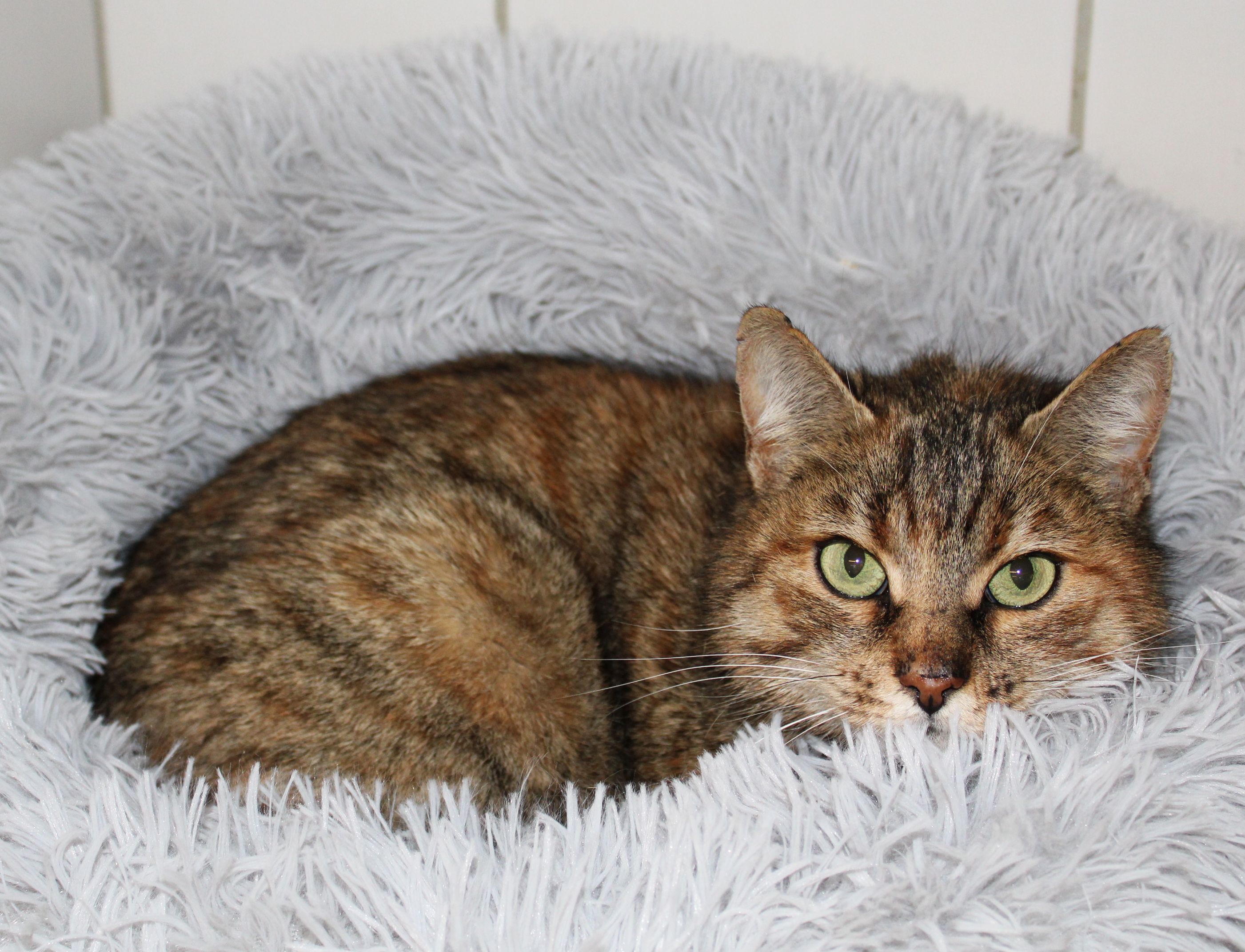 Julia ist anfangs etwas schüchtern, taut aber schnell auf und ist dann sehr verschmust. Wenn sie jemanden lieb gewonnen hat, fordert sie Streicheleinheiten ein und ist auch etwas redselig wenn sie diese nicht bekommt.
